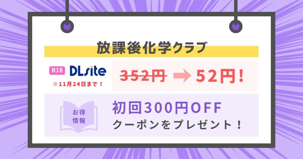 放課後化学クラブ』を安心して楽しむなら、DLsiteでの購入一択です。DLsiteは20年以上運営されている国内最大級の電子書籍・同人作品販売サイトで、信頼性は抜群。しかも、お得なクーポン制度や試し読みが充実しています。
