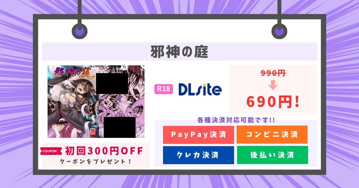 『邪神の庭』を安心して楽しむなら、DLsiteでの購入一択です。DLsiteは20年以上運営されている国内最大級の電子書籍・同人作品販売サイトで、信頼性は抜群。しかも、お得なクーポン制度や試し読みが充実しています。