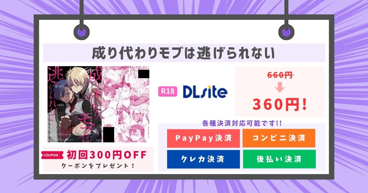 『成り代わりモブは逃げられない』を安心して楽しむなら、DLsiteでの購入一択です。DLsiteは20年以上運営されている国内最大級の電子書籍・同人作品販売サイトで、信頼性は抜群。しかも、お得なクーポン制度や試し読みが充実しています。