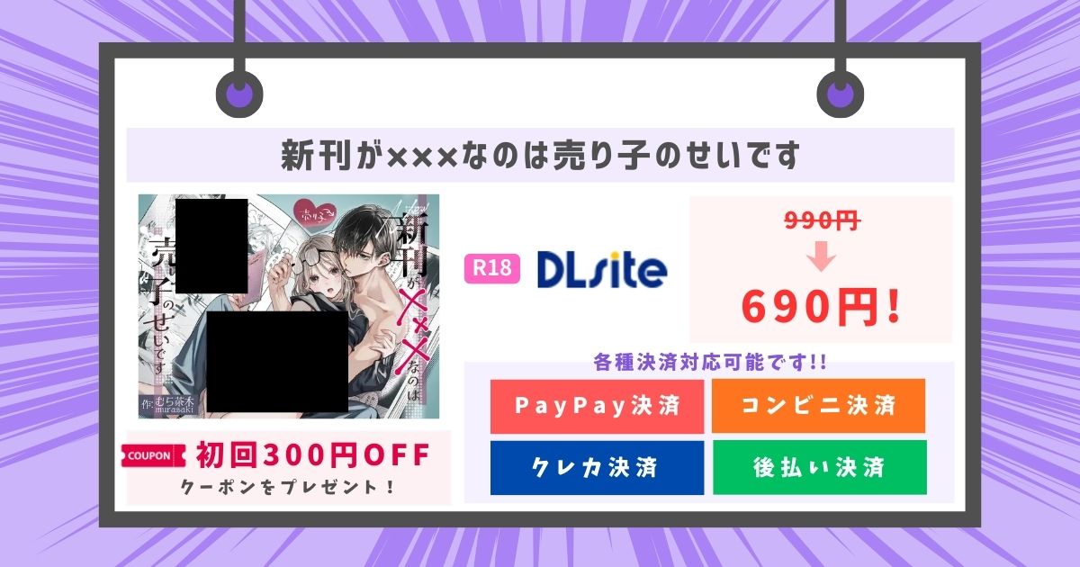『新刊が×××なのは売り子のせいです』を安心して楽しむなら、DLsiteでの購入一択です。DLsiteは20年以上運営されている国内最大級の電子書籍・同人作品販売サイトで、信頼性は抜群。しかも、お得なクーポン制度や試し読みが充実しています。